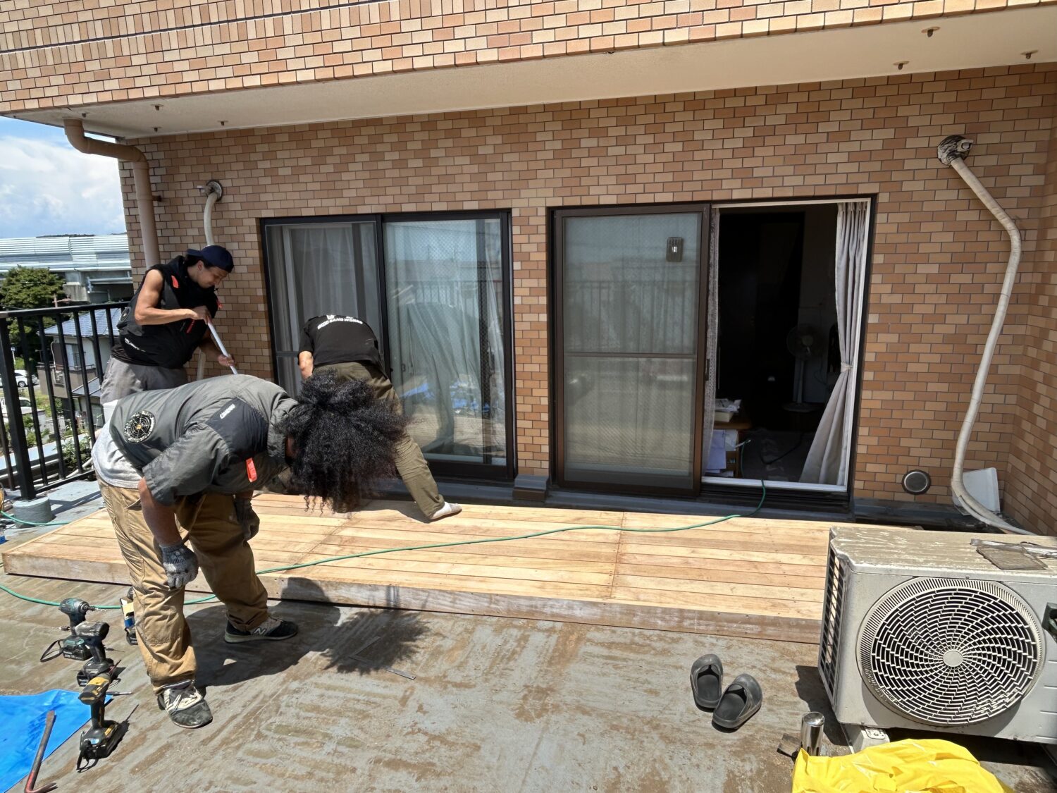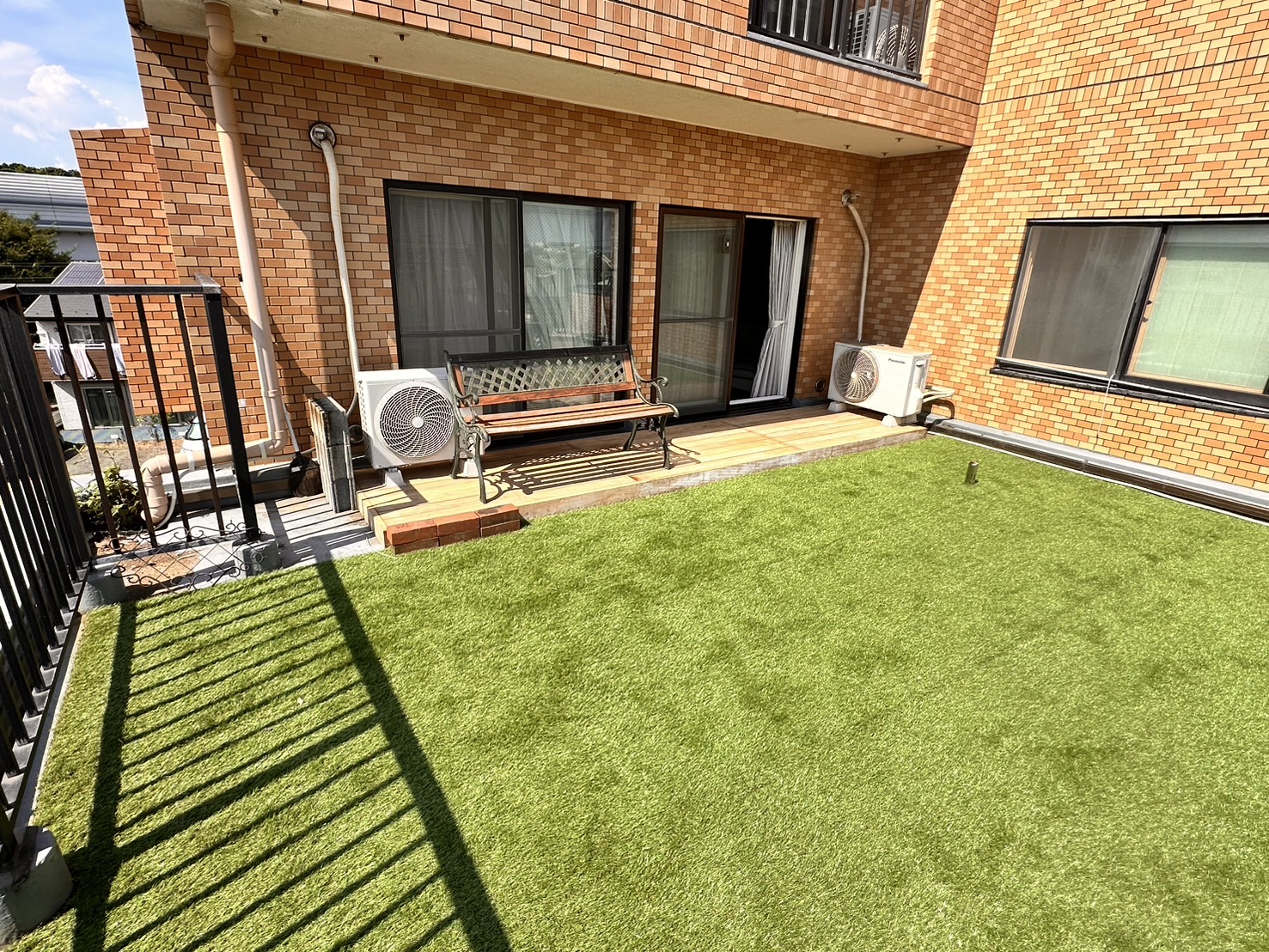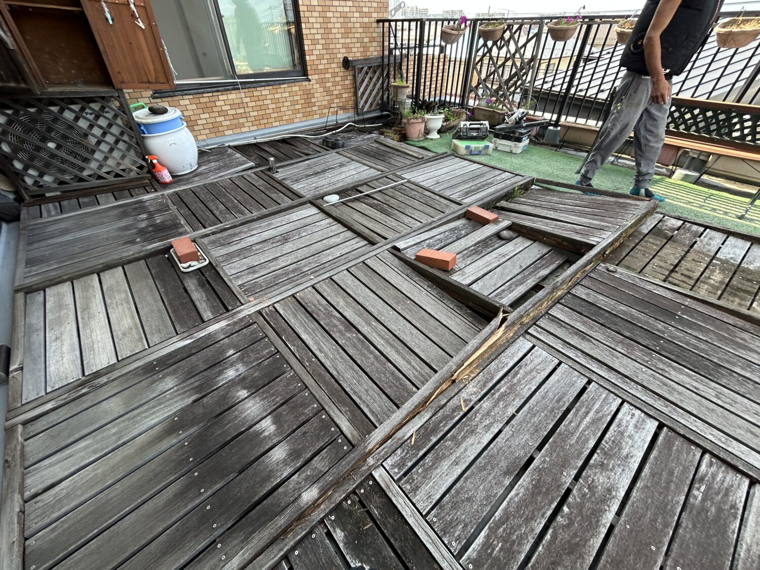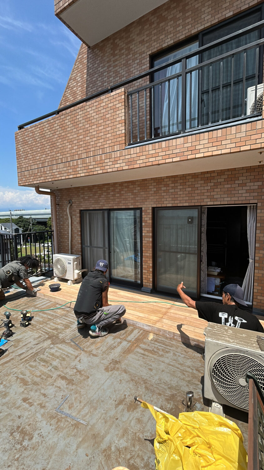 茅ヶ崎市赤羽根にてマンションの専用庭バルコニーのウッドデッキを改修させて頂きました。
