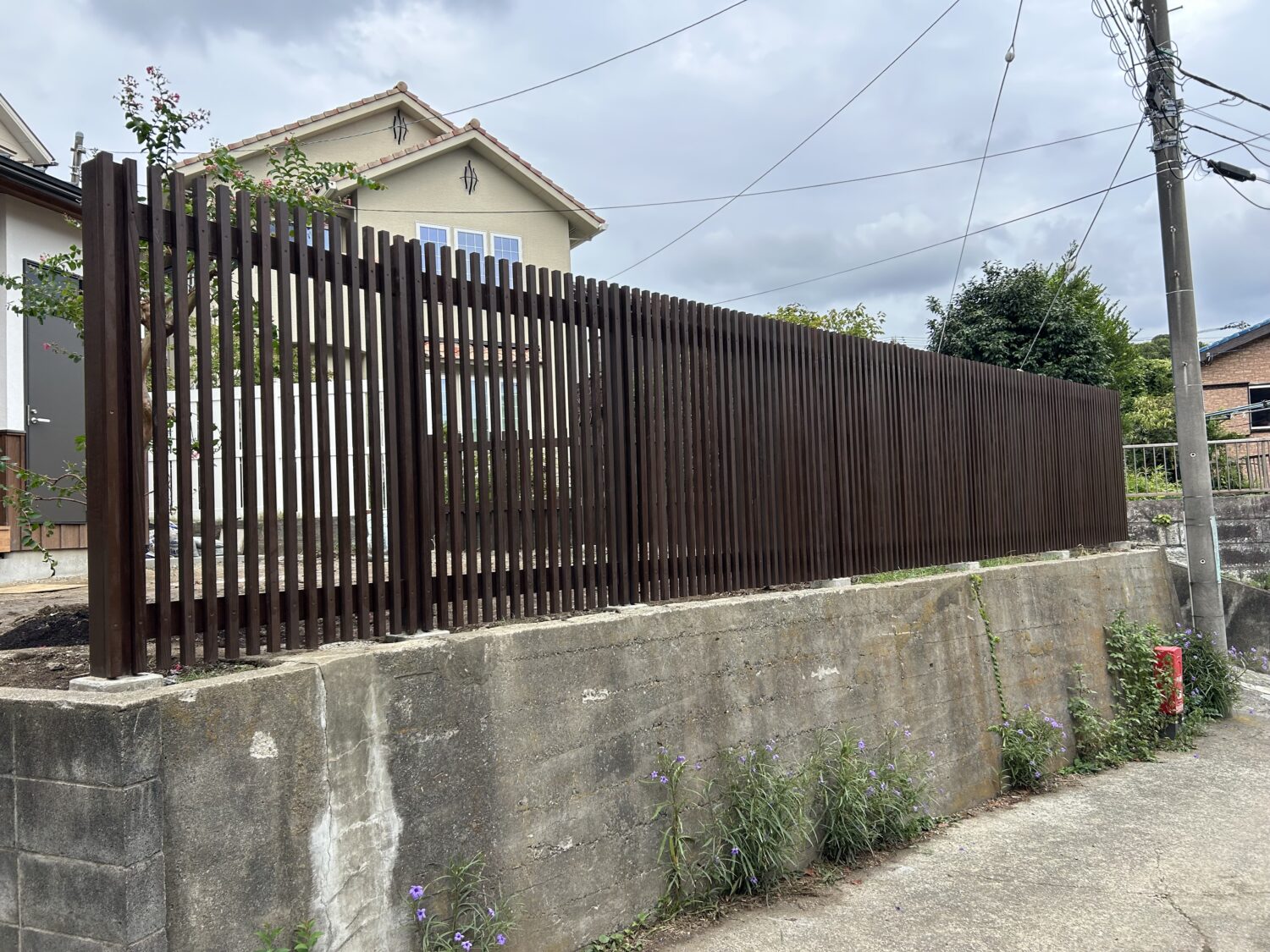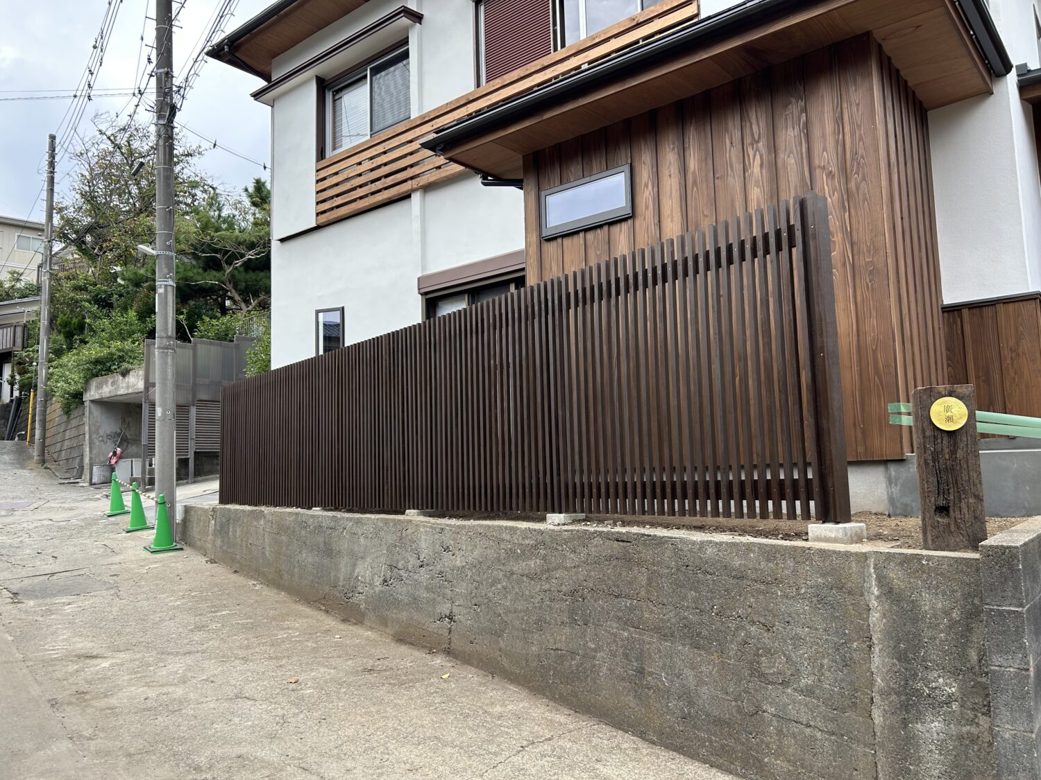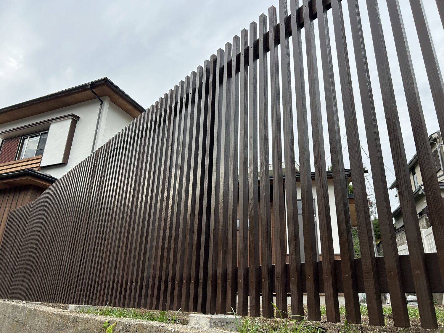 支柱と胴縁はハードウッドにフェンス材は杉を採用。