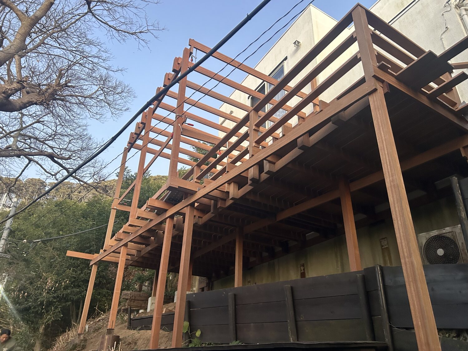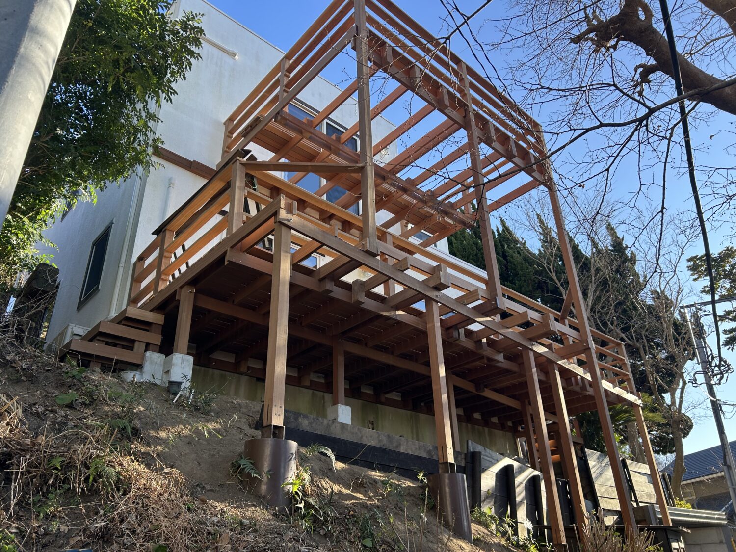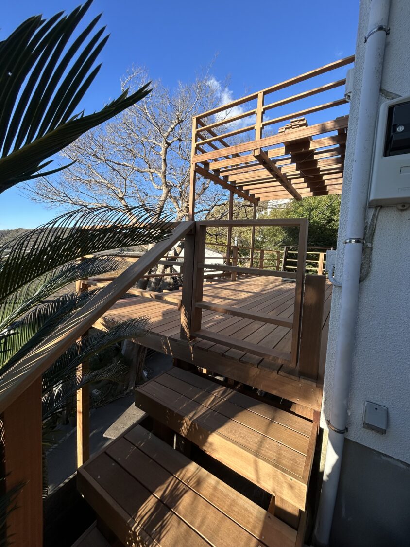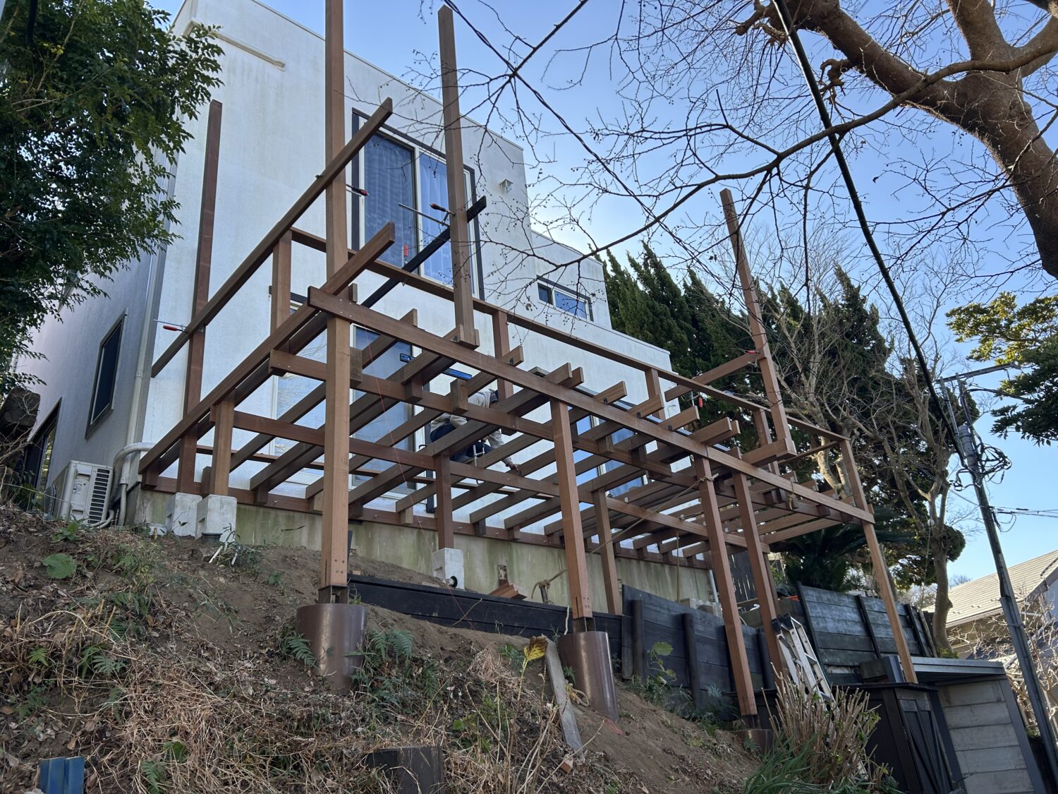 葉山町下山口にて法面にウッドデッキを施工させて頂きました。