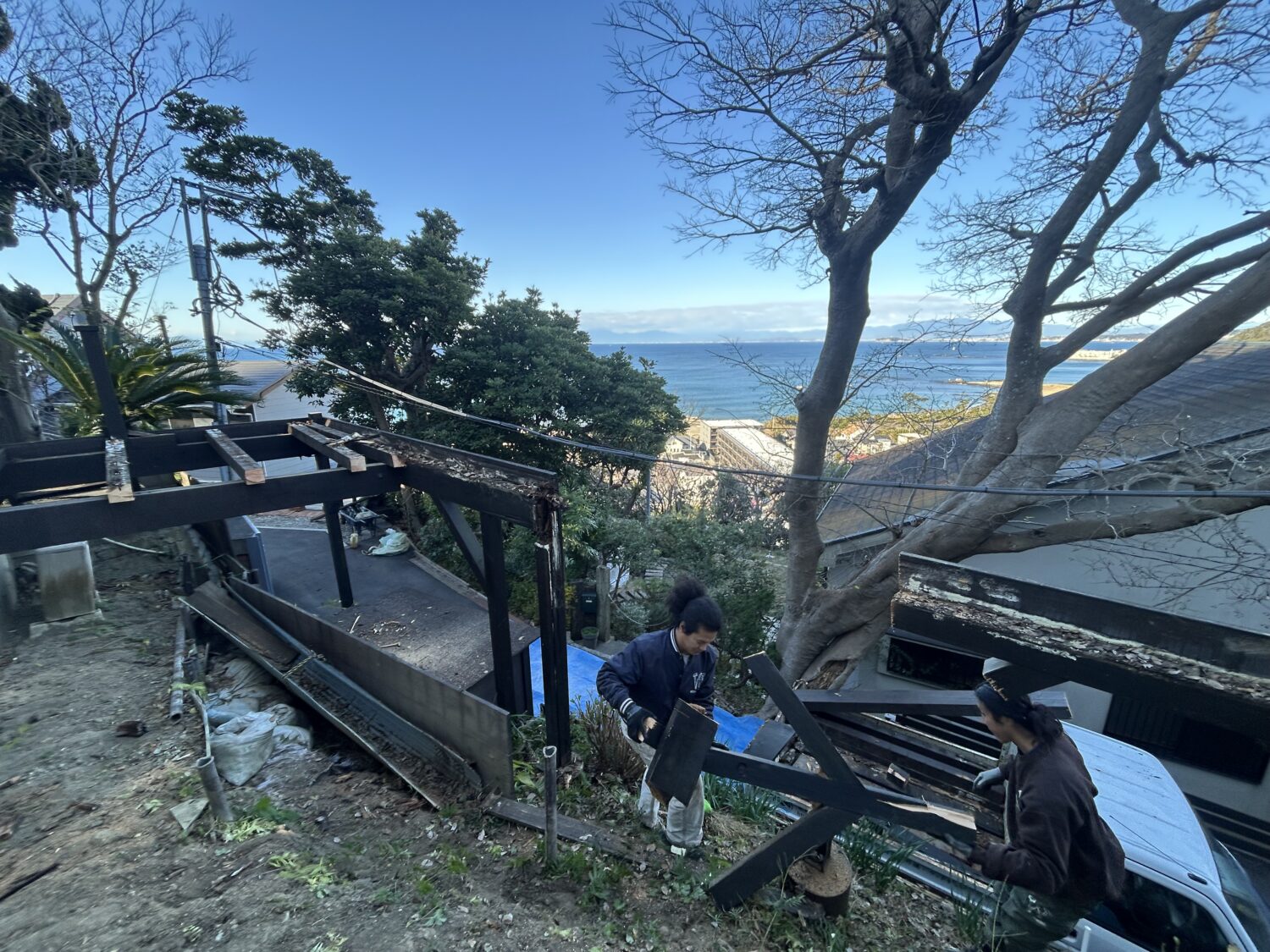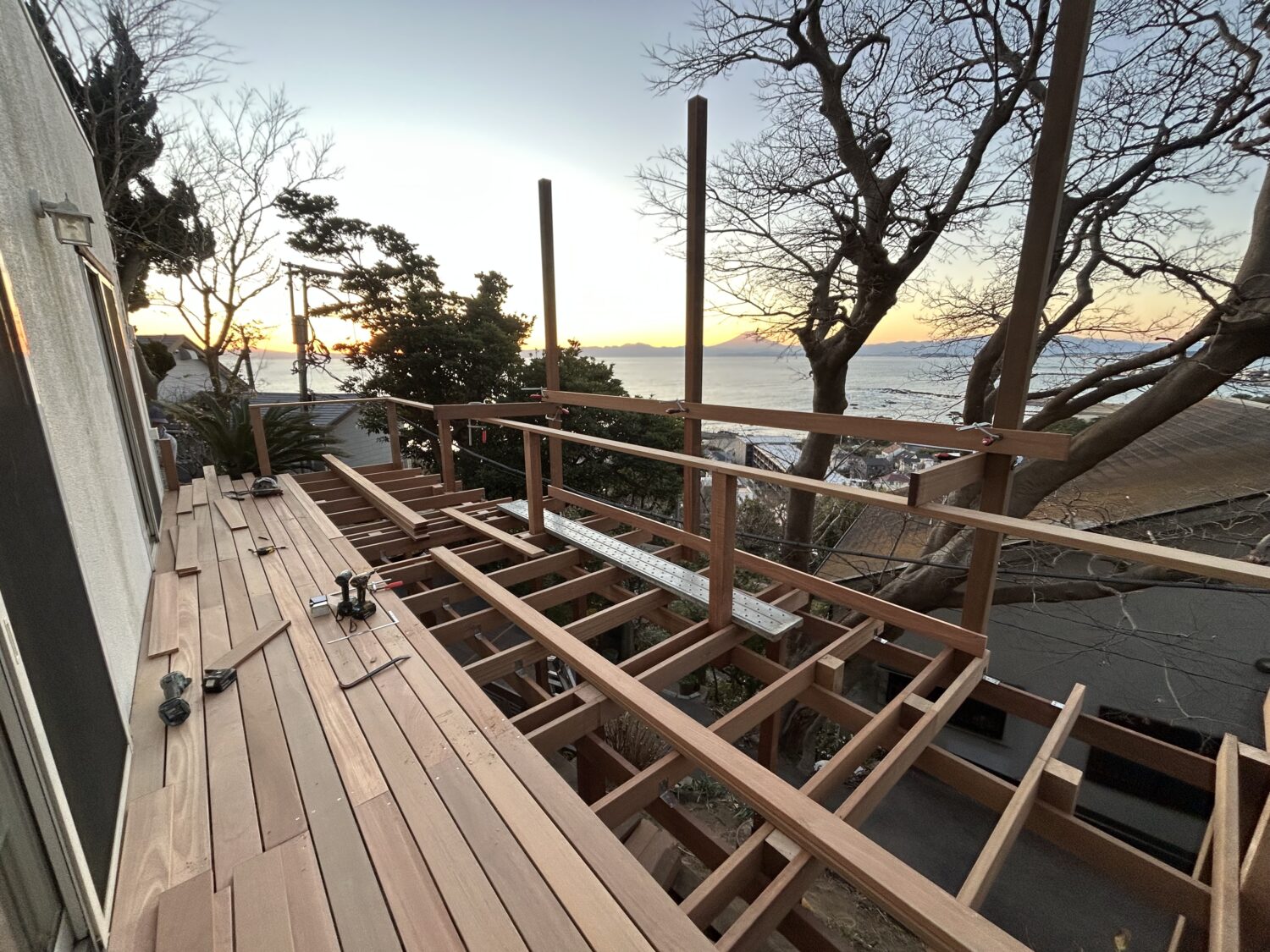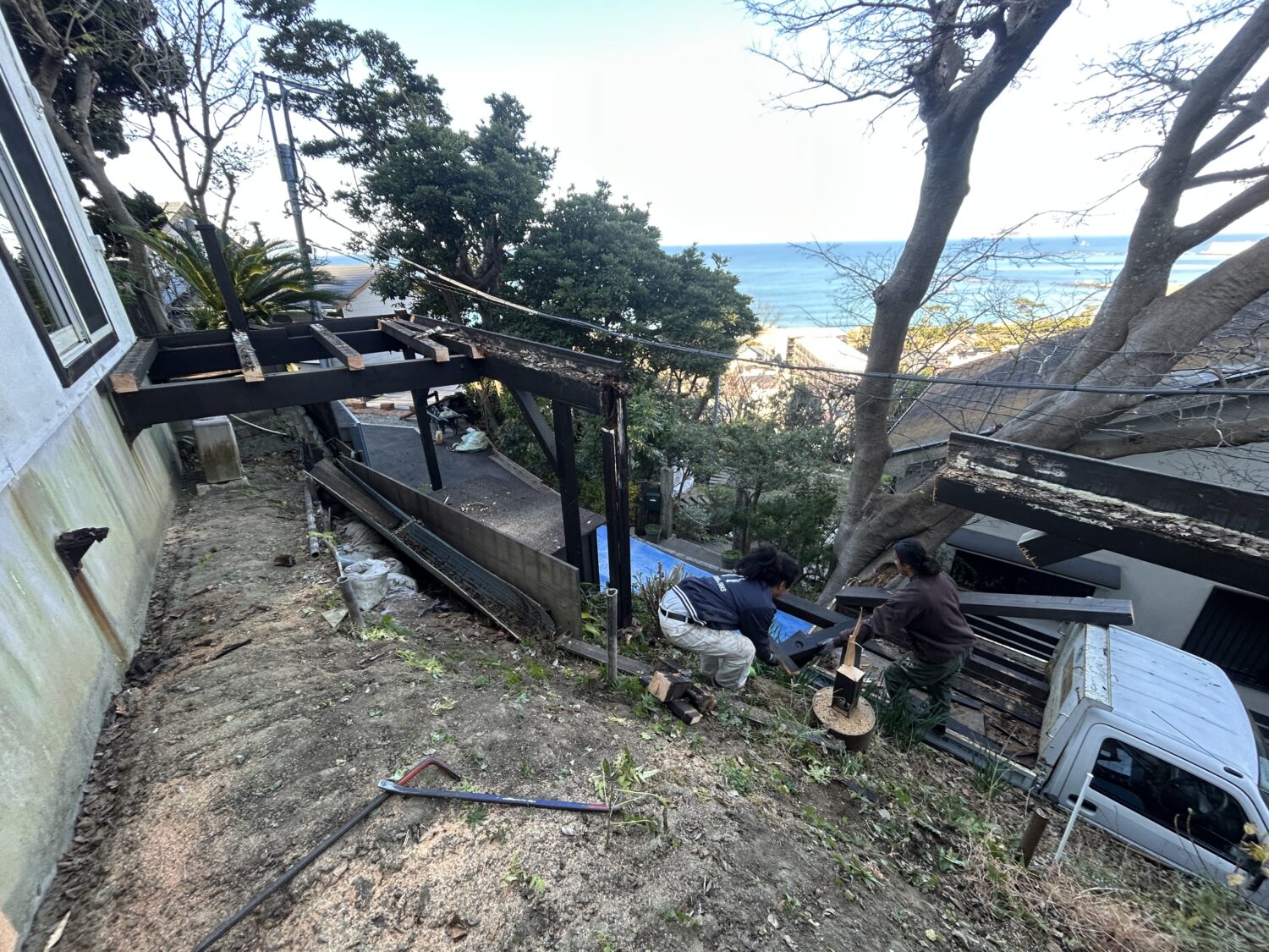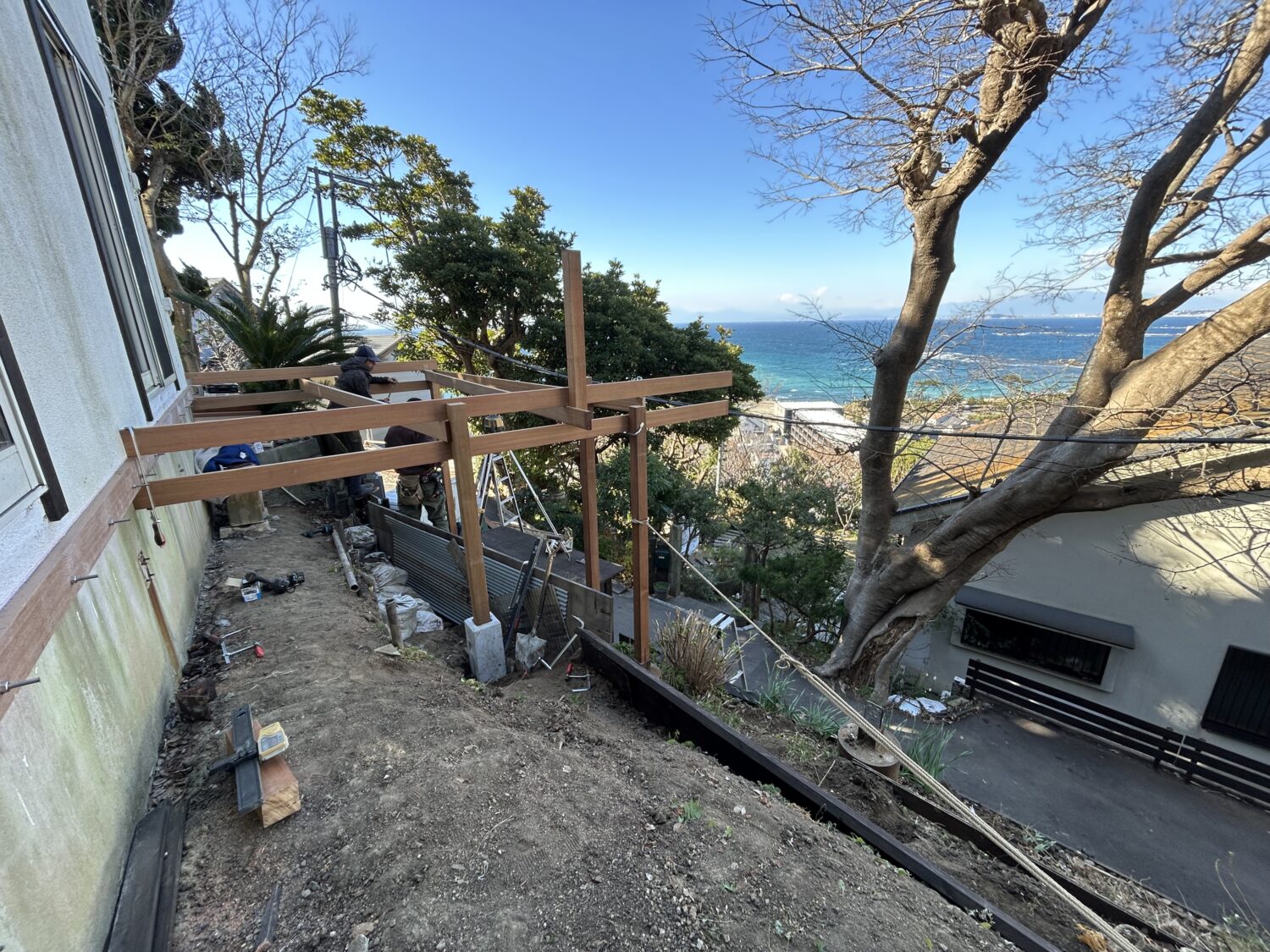 葉山町下山口にて法面にウッドデッキを施工させて頂きました。